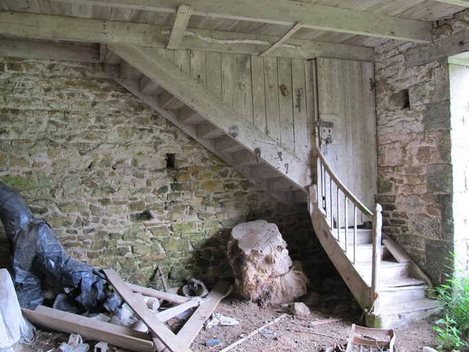 Pluzunet, Lann Vihan : ferme (début du 20e siècle, probablement vers 1910), grange, escalier menant au grenierImmatriculation