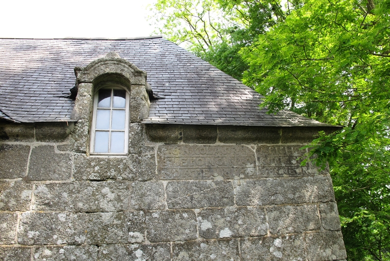 Pluzunet, le Loch : chapelle Notre-Dame, transept est, élévation sud, détail du décor et du millésime vraisemblablement 1779Immatriculation