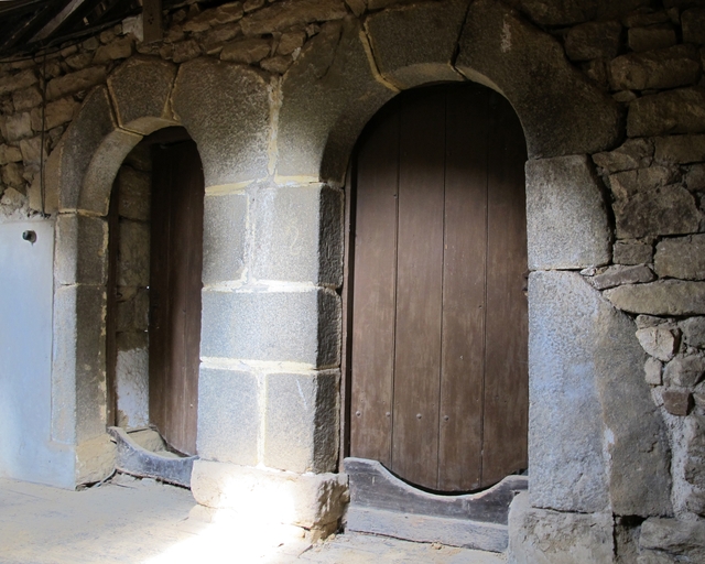 Pluzunet, Pen Lan : manoir puis ferme, vue intérieure, étage, portes géminées en arc plein cintre (huisseries d'origine)Immatriculation