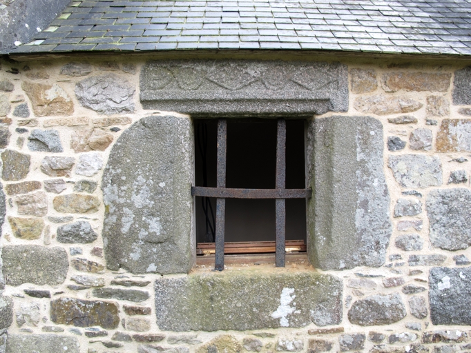 Caouënnec-Lanvézéac, bourg de Lanvézéac : église paroissiale de Saint-Ezéchiel, fenêtre ornéeImmatriculation