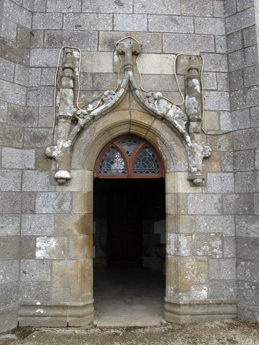 Caouënnec-Lanvézéac, bourg de Caouënnec : église paroissiale de Notre-Dame, porche sud, porte de style gothique (remploi)Immatriculation