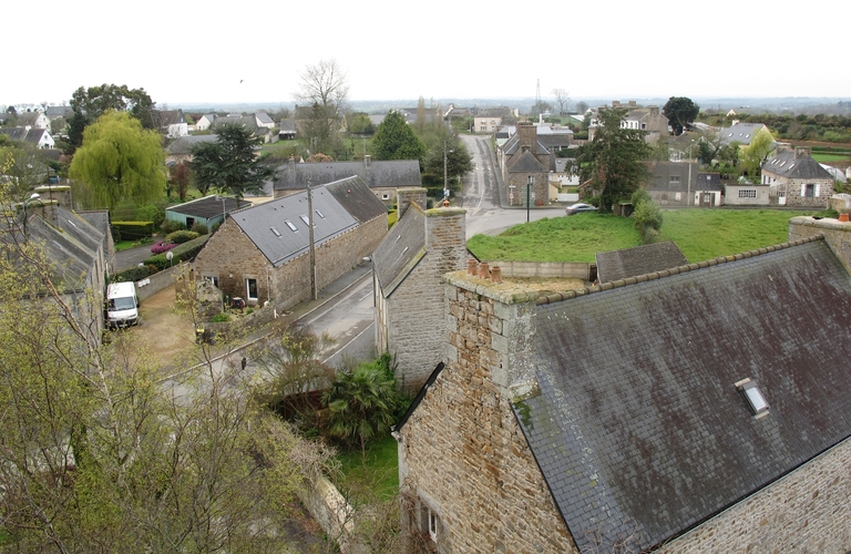 Caouënnec-Lanvézéac, Caouënnec, le bourg : vue générale depuis le clocher de l'église paroissiale de Notre-DameImmatriculation