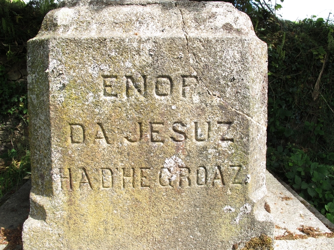 Coatascorn, Garnel : croix de mission, détail du socleImmatriculation