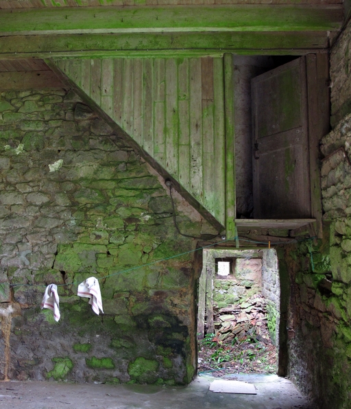 Cavan, Pen an Lan : grange, vue intérieure, détail de l'escalierImmatriculation
