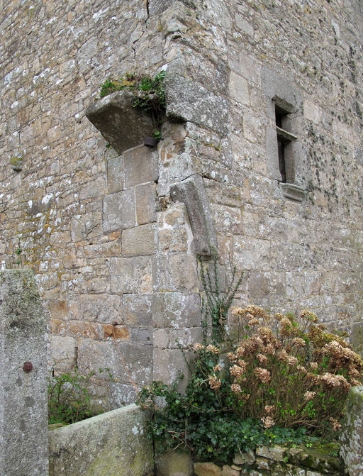 Cavan, Bois Riou : manoir, pavillon nord flanquant l'entrée, vue de détail des vestiges du portail d'entrée et baie datable du 16e siècleImmatriculation