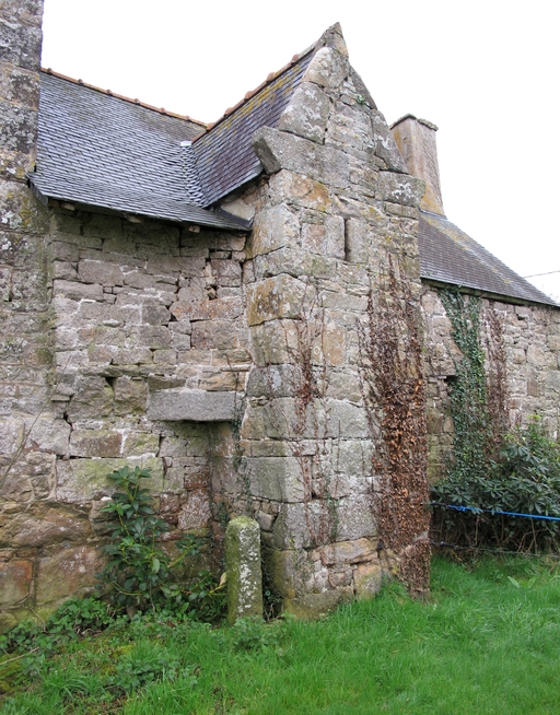 Cavan, Bois Riou : manoir, logis datable du 17e siècle, élévation postérieure orientée vers l'est-nord-est. S'agit-il de latrines ou d'une ouverture de tir orientée vers l'entrée ?Immatriculation
