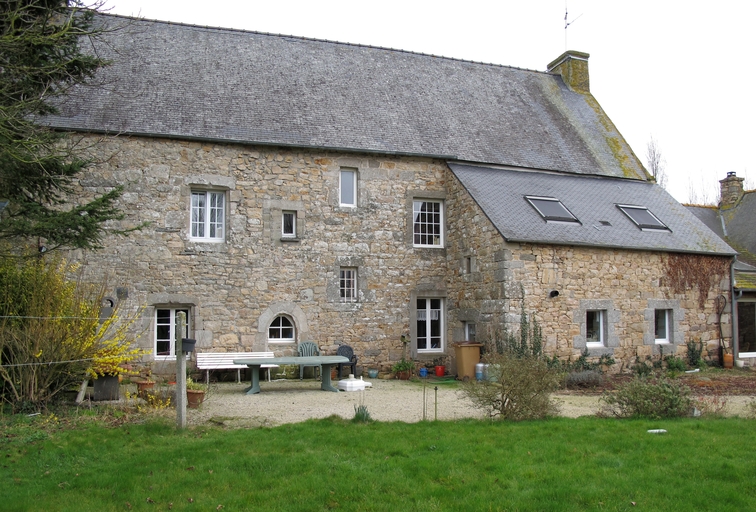 Cavan, Bois Riou : manoir, logis, élévation postérieure orientée vers le sud-ouest. L'appentis figure sur le cadastre ancienImmatriculation