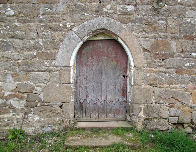 Tonquédec, Rubudas : manoir, élévation antérieure orientée vers l'ouest, rez-de-chaussée, porte en arc briséImmatriculation