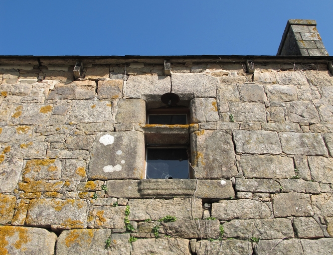 Tonquédec, Kerboriou : manoir, élévation antérieure orientée vers le sud-sud-ouest, étage, fenêtre à traverse, vue de détailImmatriculation