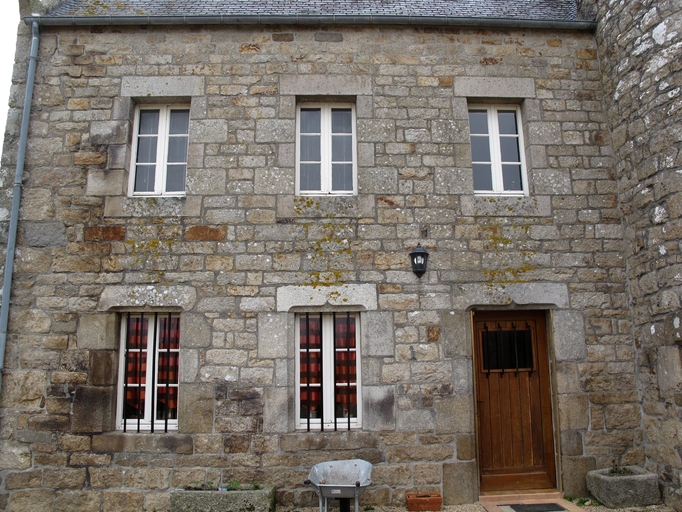Tonquédec, Runamber : manoir, élévation postérieure orientée vers le sud. L'édifice a été renversé au 19e siècle. Un des linteaux porte le millésime 1885Immatriculation