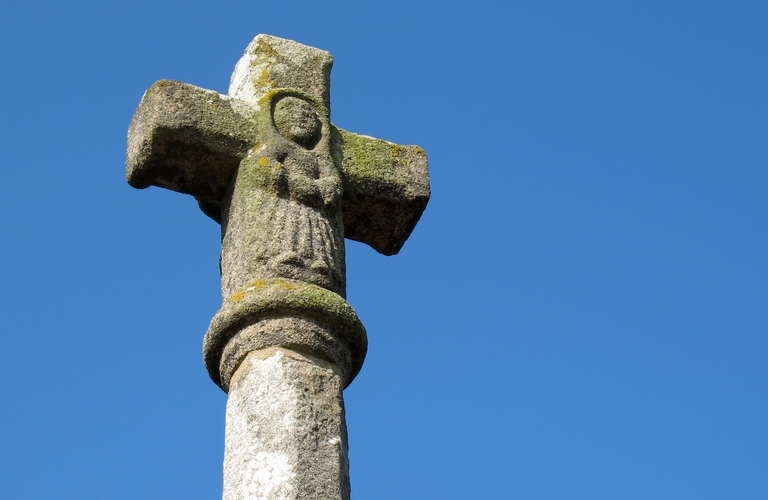 Tonquédec, le Loc : croix de chemin, Vierge, vue de détailImmatriculation