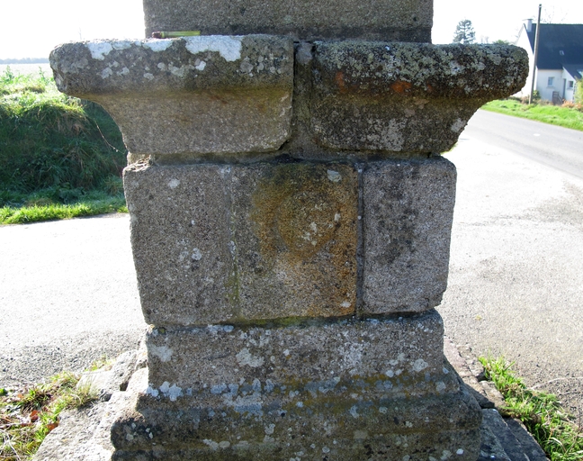 Tonquédec, le Loc : croix de chemin, socle, ornementation, vue de détailImmatriculation