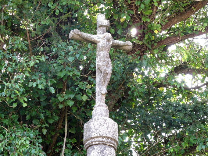 Tonquédec, Poul an Riou : croix de chemin, Christ en croix, vue de détailImmatriculation