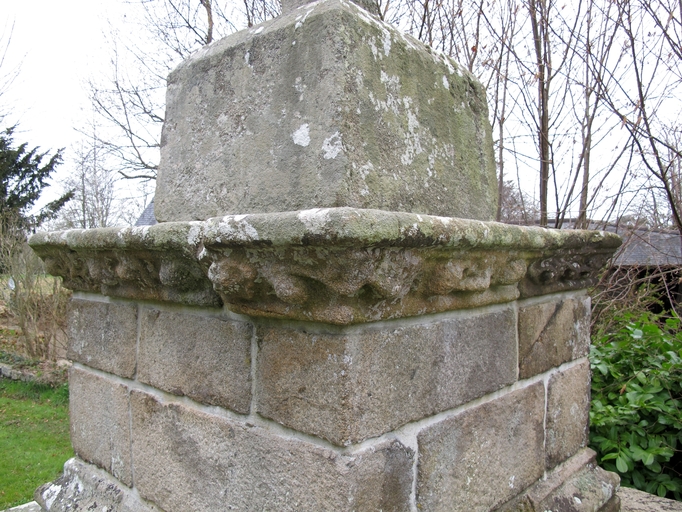 Tonquédec, Saint-Gildas : calvaire, socle, vue de détailImmatriculation