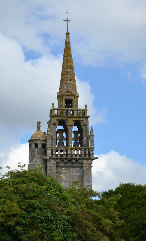 Prat, le bourg : église paroissiale Saint-Pierre, clocher, vue générale depuis l'ouestImmatriculation