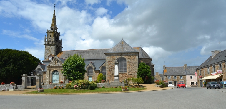 Prat, le bourg, place de l'Église : église paroissiale Saint-Pierre, vue générale depuis le sudImmatriculation