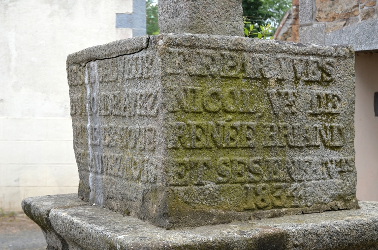 Prat, route de Rugwazhvin : croix de chemin, socle, vue de détailImmatriculation