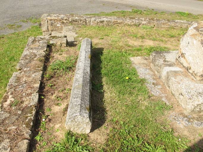 Prat, chapelle de Trévoazan : croix, fût à terre, vue de détailImmatriculation