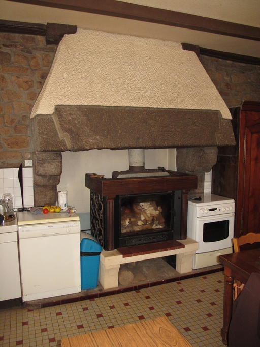Prat, Kermerrien : manoir puis ferme, vue intérieure, rez-de-chaussée (actuelle cuisine), cheminéeImmatriculation