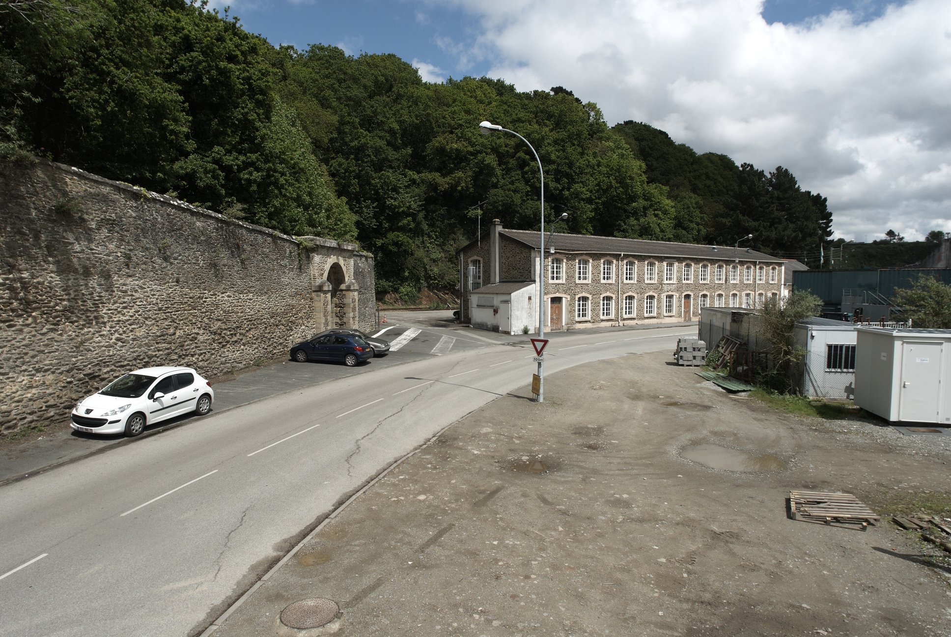 Brest, fond de la Penfeld, dans l´enceinte de l´arsenal : fortifications, porte et caserne, vue de situationImmatriculation