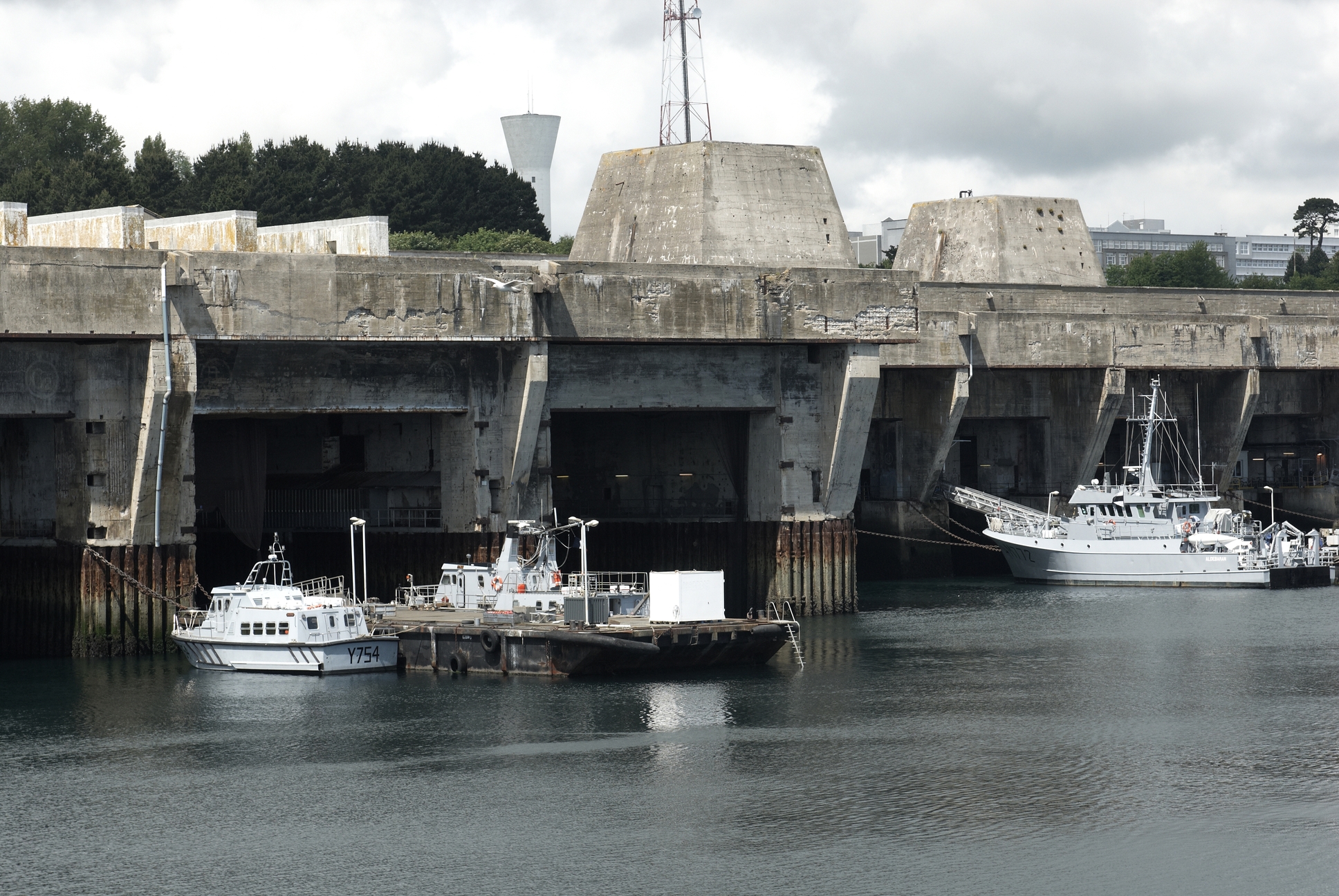 Vue de la base de sous-marins depuis l´intérieur de l'enceinte de l´arsenal : détail du front sud-estImmatriculation
