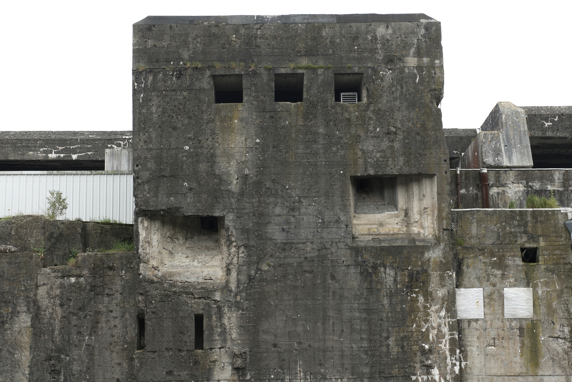 Vue de la base de sous-marin prise depuis l´intérieur de l'enceinte de l´arsenal : front nord-ouest, tour créneléeImmatriculation