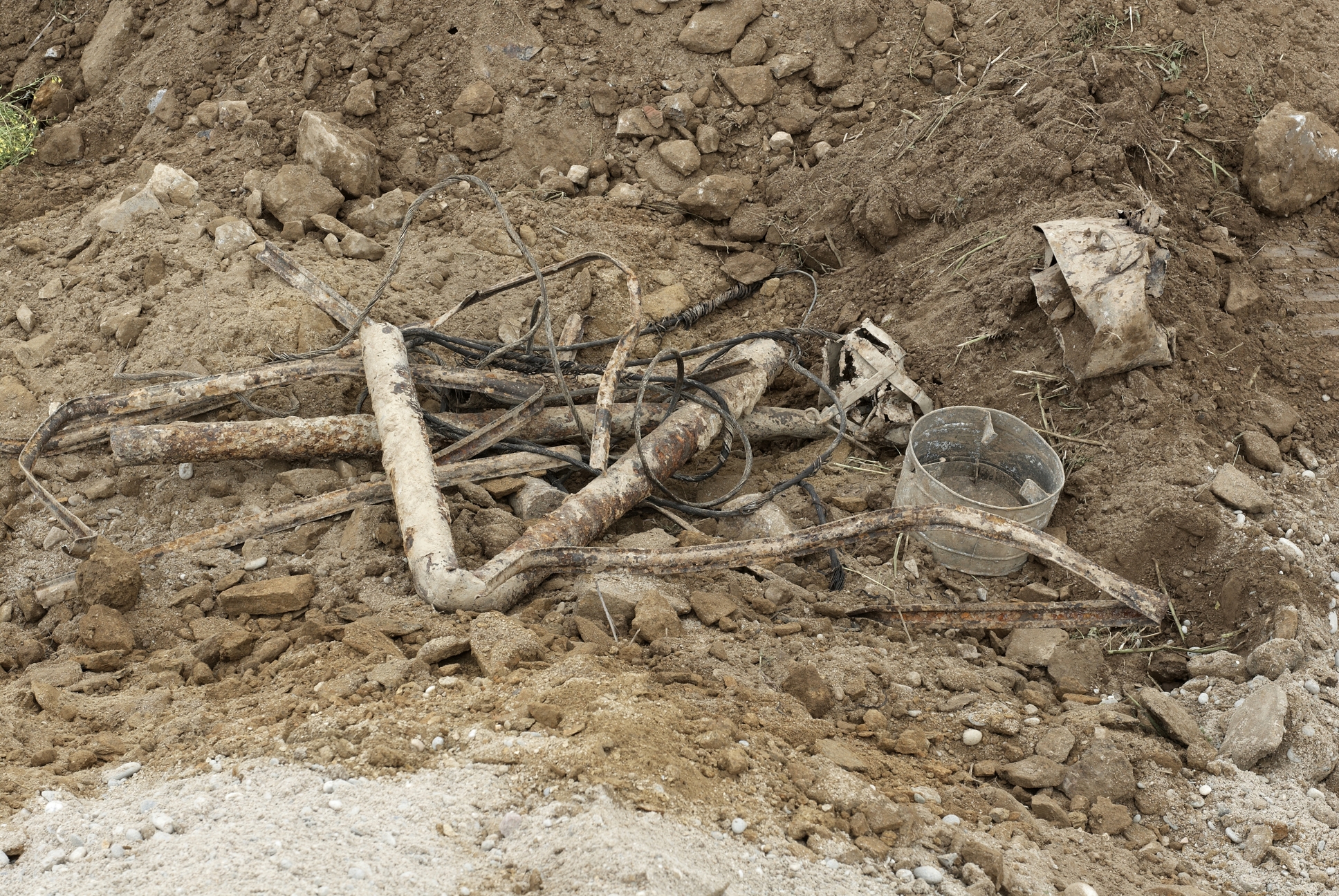 Vestiges métalliques (tuyaux et câbles...) découverts lors de la déconstruction des bunkersImmatriculation