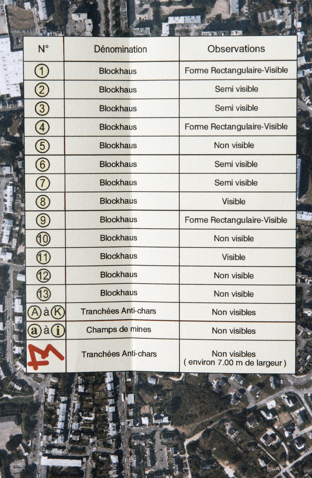 Brest, Zone d'aménagement concerté (ZAC) de Fontaine Margot : plan orthophotographique des tranchées antichars et des blockhaus (Ville de Brest, 4/03/2009)Immatriculation