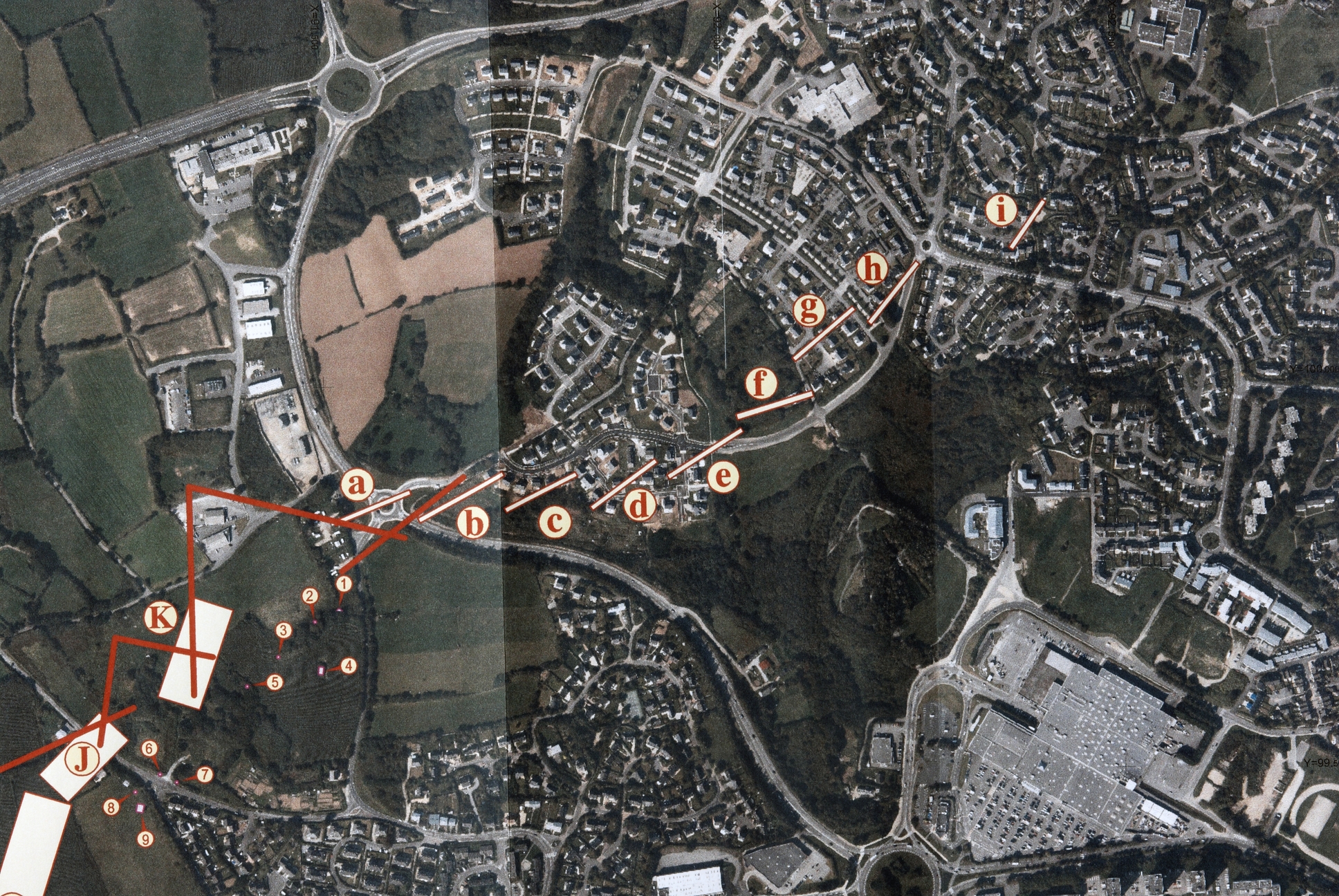 Brest, Zone d'aménagement concerté (ZAC) de Fontaine Margot : plan orthophotographique des tranchées antichars et des blockhaus (Ville de Brest, 4/03/2009)Immatriculation