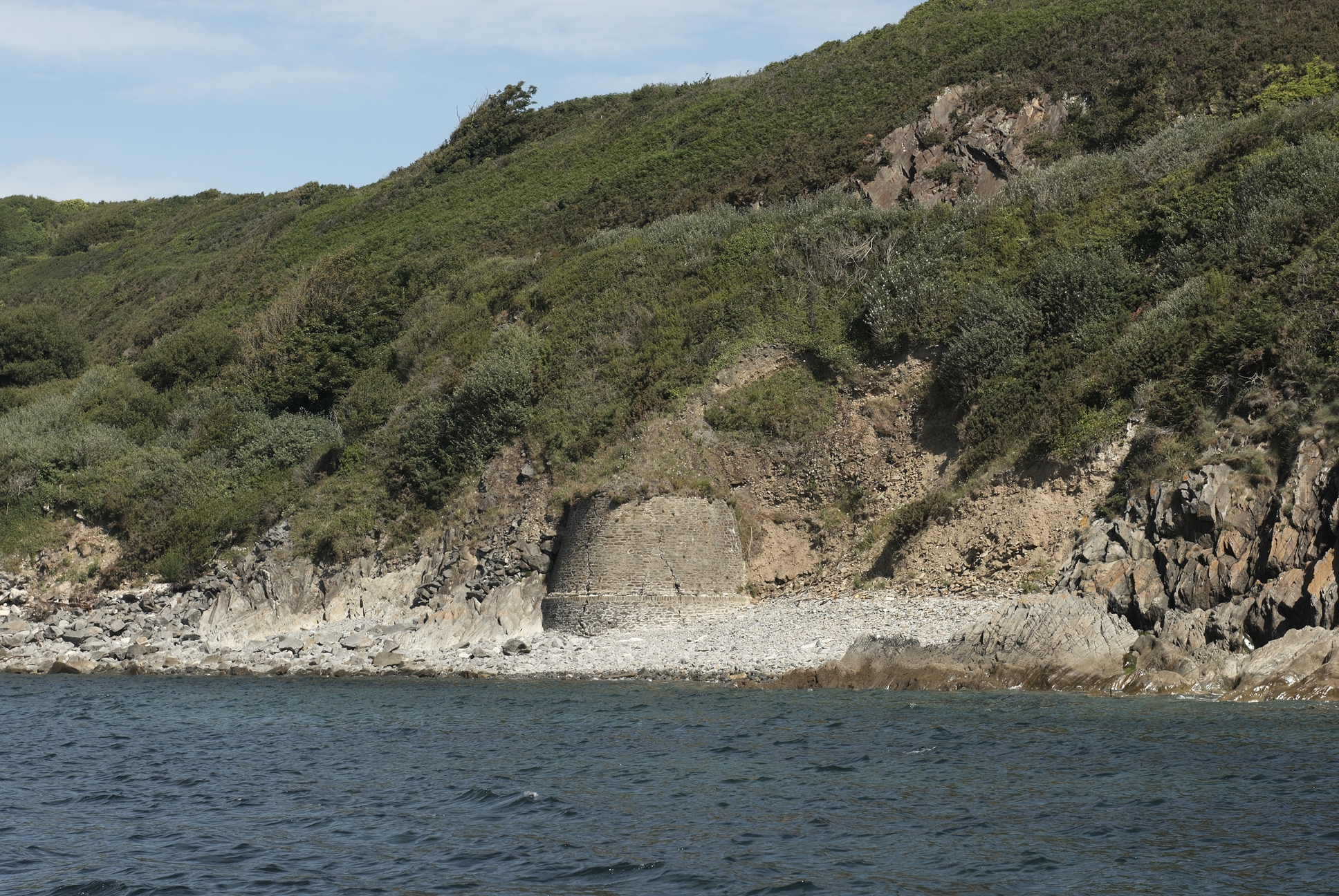 Brest, pointe du Portzic : batterie de rupture, les vestiges depuis la mer, massif de maçonnerieImmatriculation