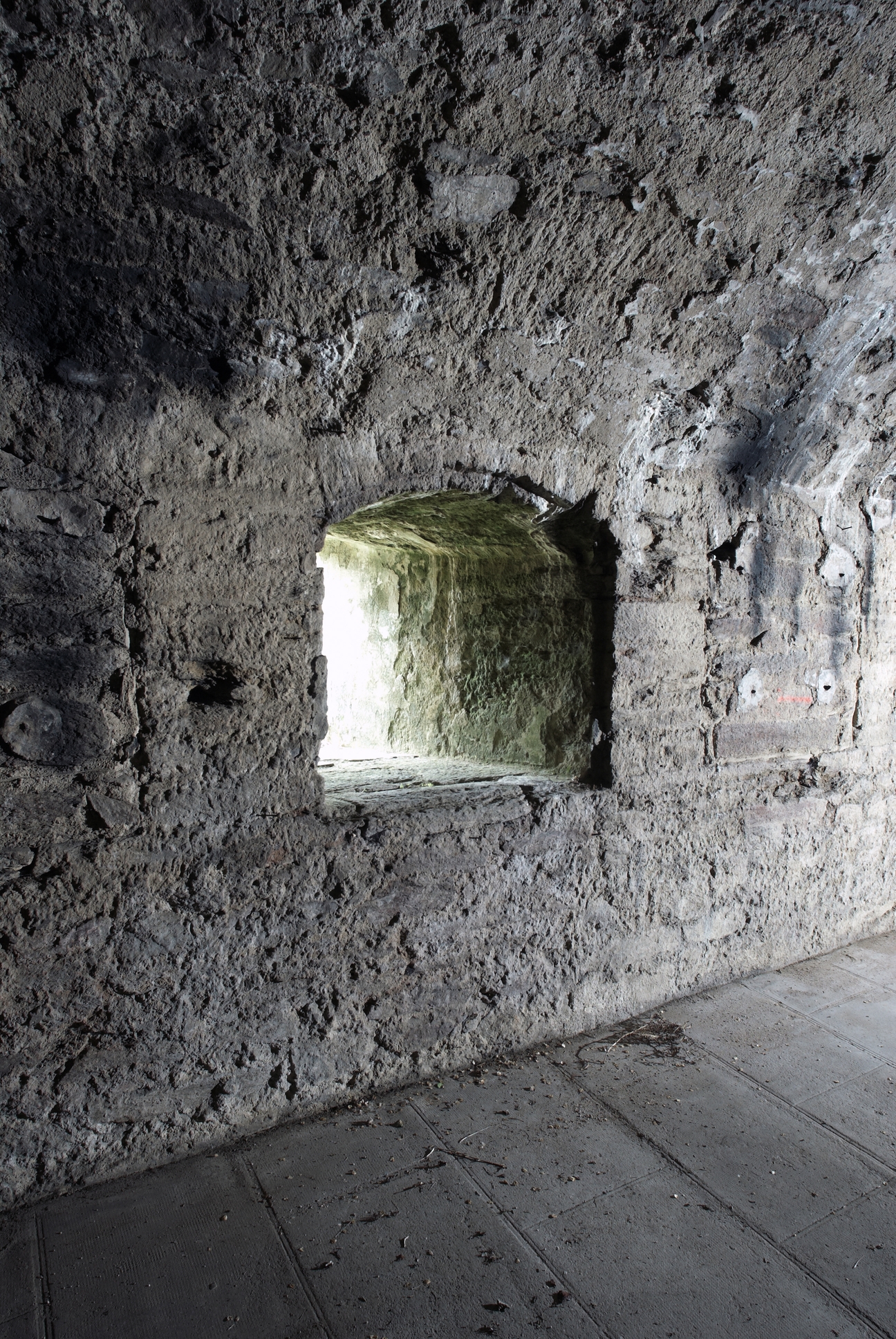 Brest : la redoute du Questel, Brest : la redoute du Questel, front de gorge sud, grande casemate inférieure dite grand souterrain, créneau de mousquetterie, photographie réalisée le 12 mai 2009Immatriculation