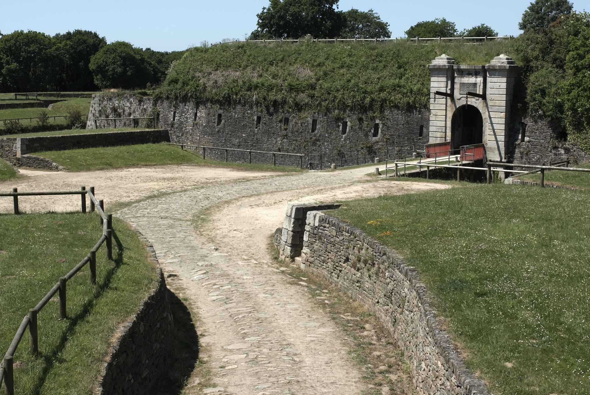 Brest : la redoute du Questel, place d'armes de la porte, chemin d'accès, photographie réalisée le 2 juin 2009. La chaussée empierrée est d´origineImmatriculation