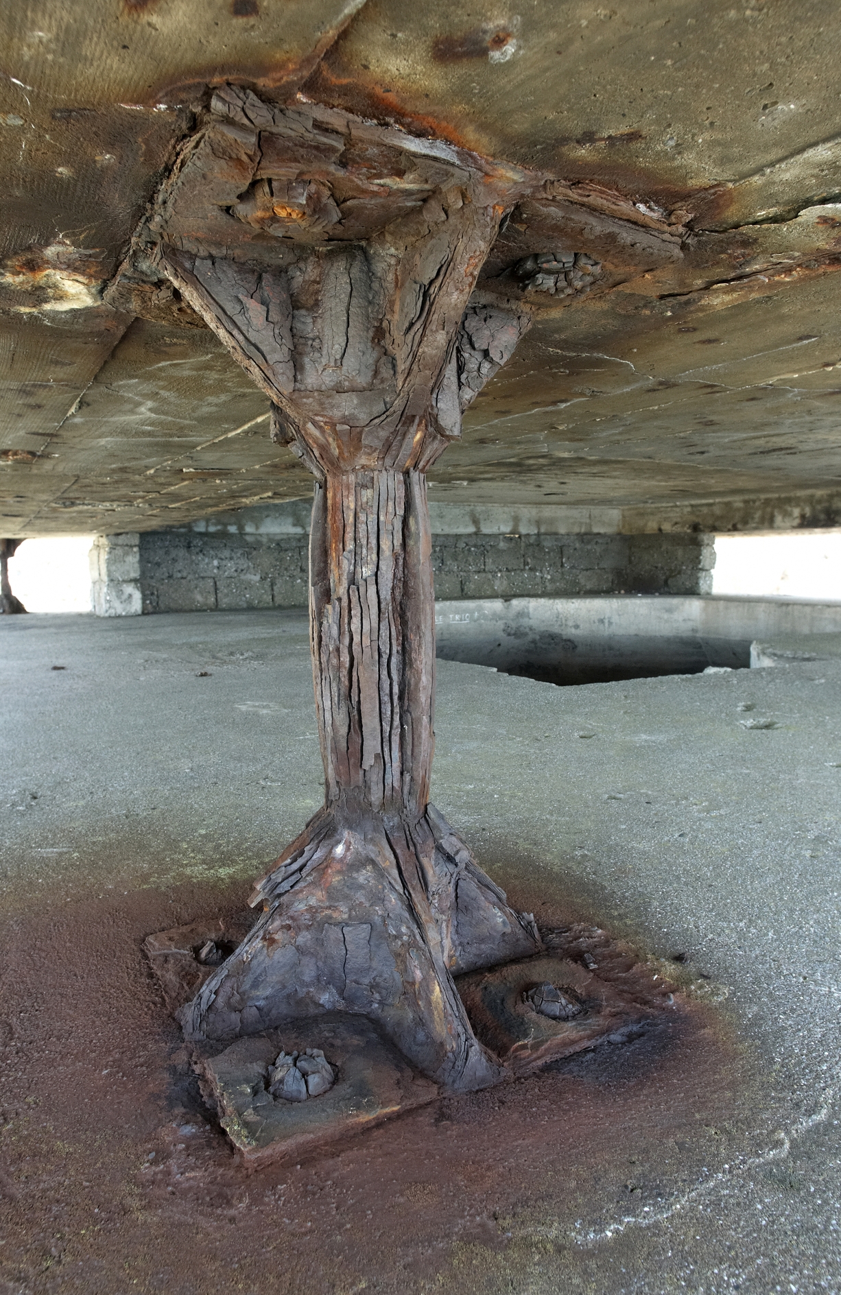 Vue du poteau métallique supportant la dalle de couverture de l'observatoire du bunker - poste de direction de tir de type M162aImmatriculation