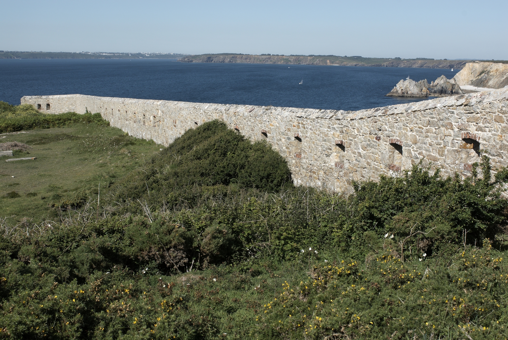 Camaret-sur-Mer, pointe du Toulinguet : vue du mur défensif percé de créneaux de fusilladeImmatriculation