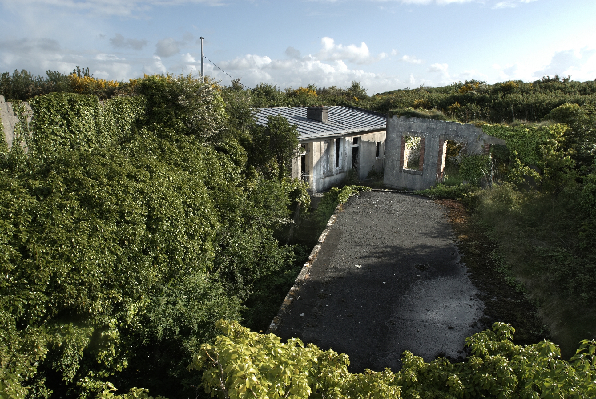 Plougastel-Daoulas, fort du Corbeau : partie haute, terrasse de l'usine éléctrique. En arrière plan : casernementImmatriculation