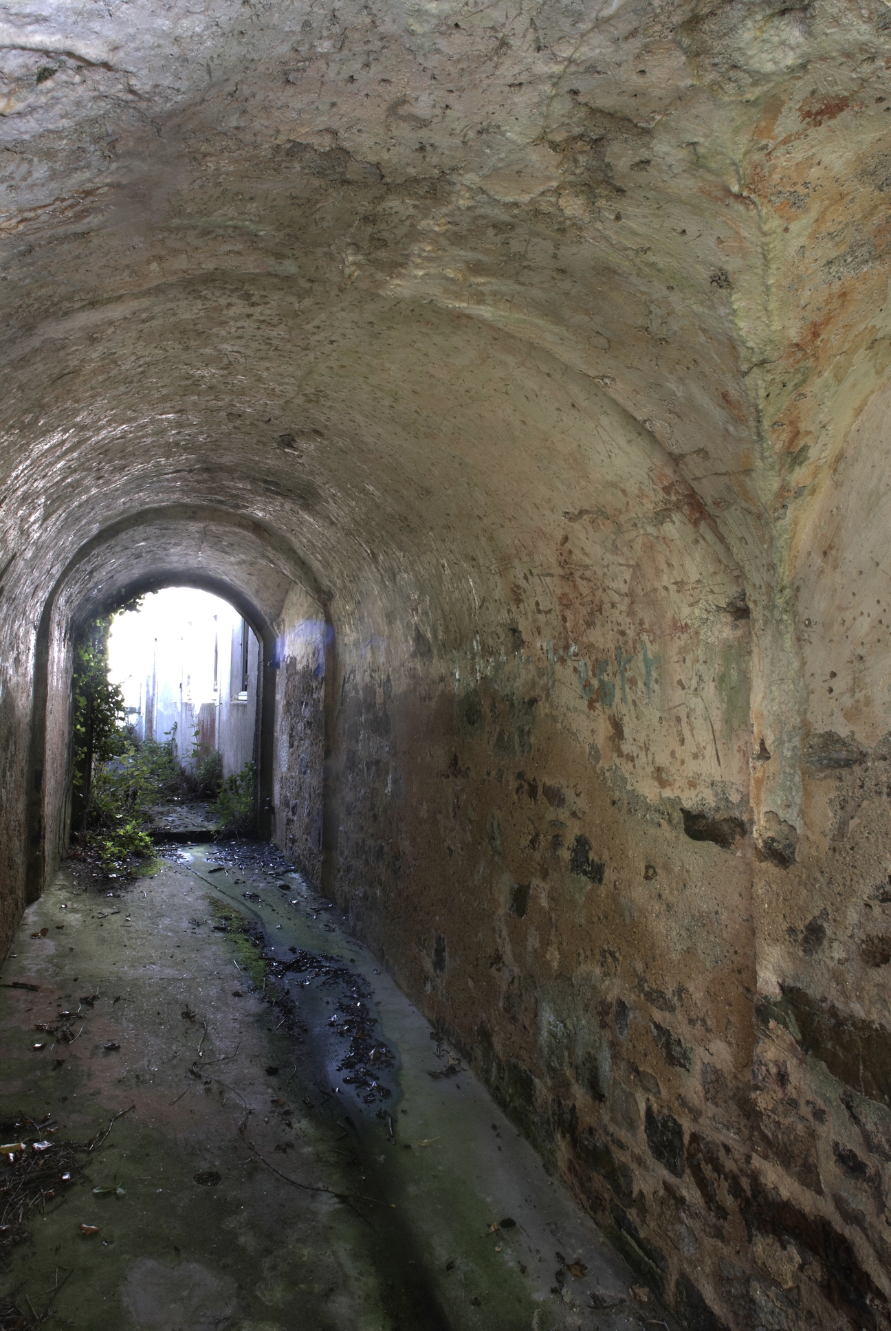 Plougastel-Daoulas, fort du Corbeau : partie haute, redoute, flanc nord-est, entrée, passage couvertImmatriculation