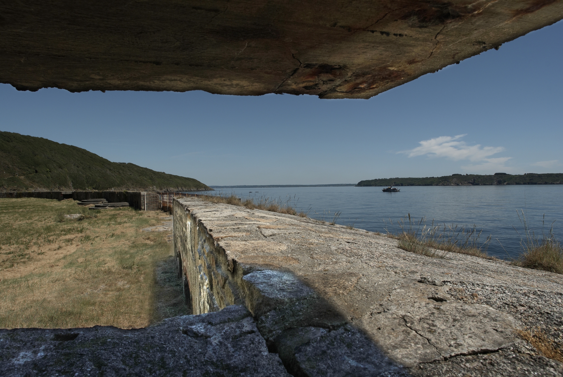 Plouzané : vue du fort du Mengant, détail de la batterie basse, parapet et poste de combat en béton armé (vraisemblablement allemand), panoramaImmatriculation