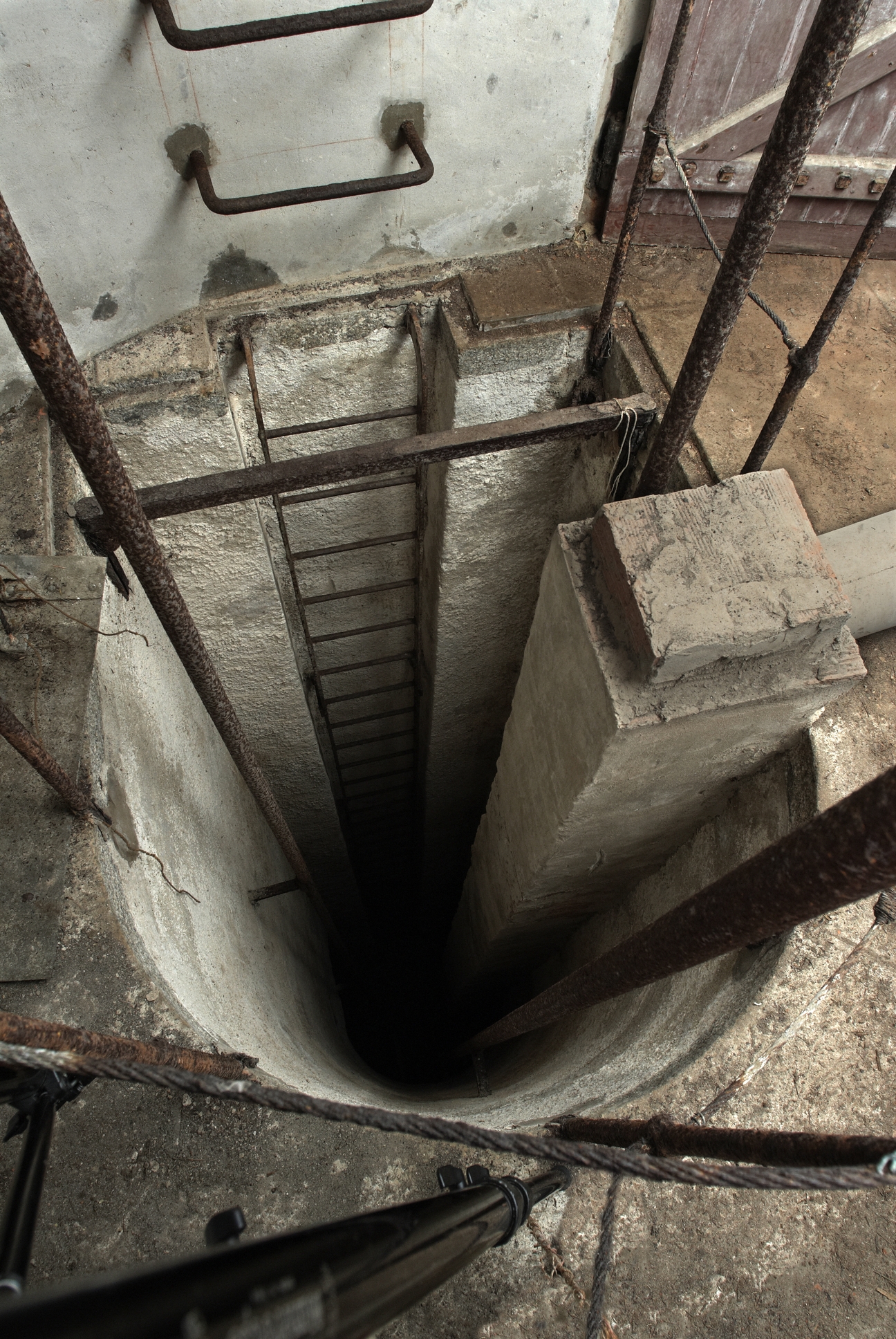 Plouzané, pointe du Minou (Kerangoff) : batterie du Sémaphore, magasin à poudre sous roc, débouché du monte-charge. Il a conservé du matériel de second oeuvre : grille défensive, porte, rail et treuilImmatriculation