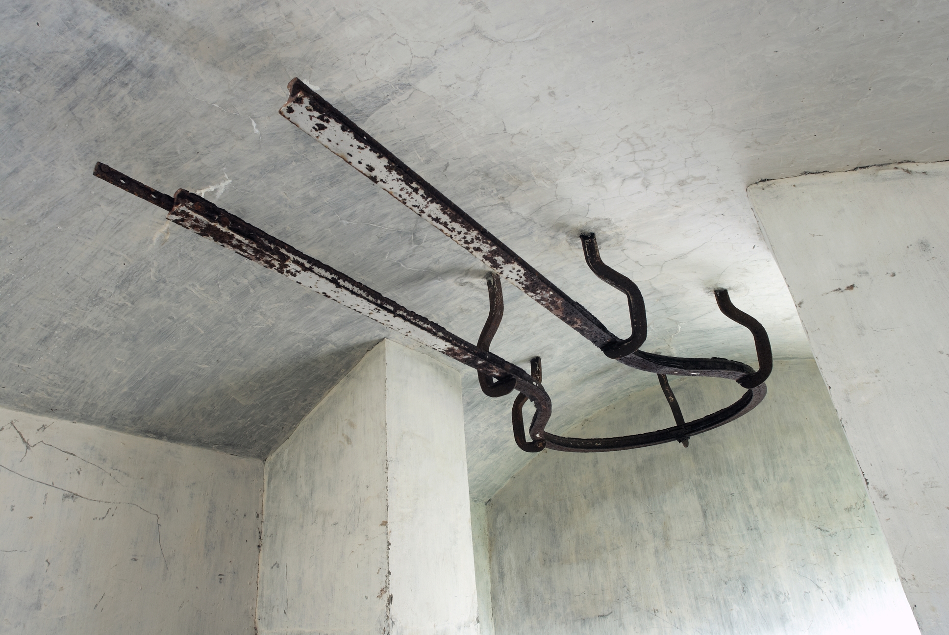 Plouzané, pointe du Minou (Kerangoff) : batterie du Sémaphore, magasin aux projectiles réalisé en béton armé (1891). Il a conservé du matériel de second oeuvre : porte, volet de ventilation et railImmatriculation