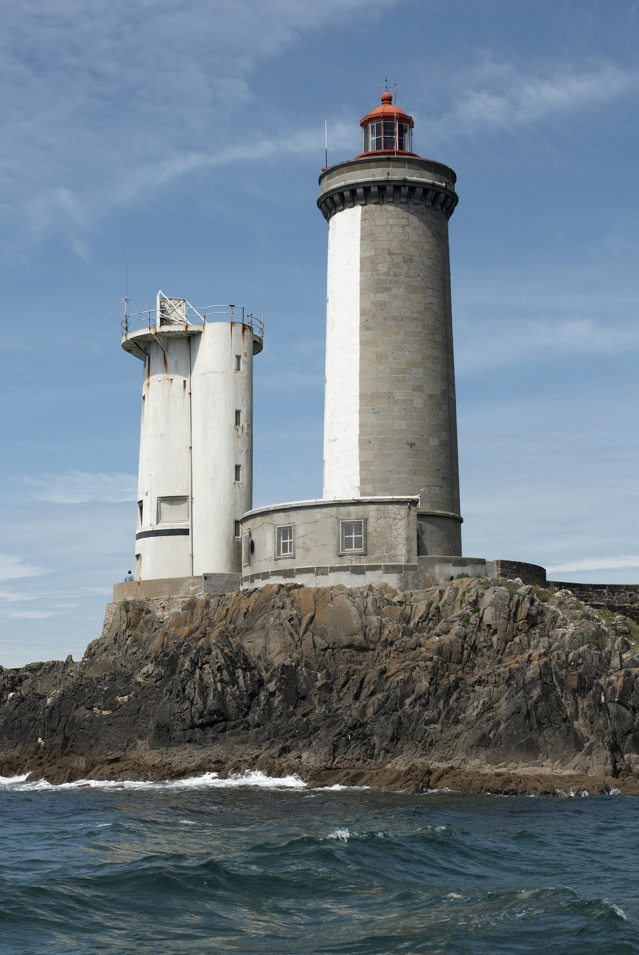 Plouzané : vue générale du phare du Petit Minou (1848). La seconde tour, construite en 1961, abritait un radôme sphériqueImmatriculation