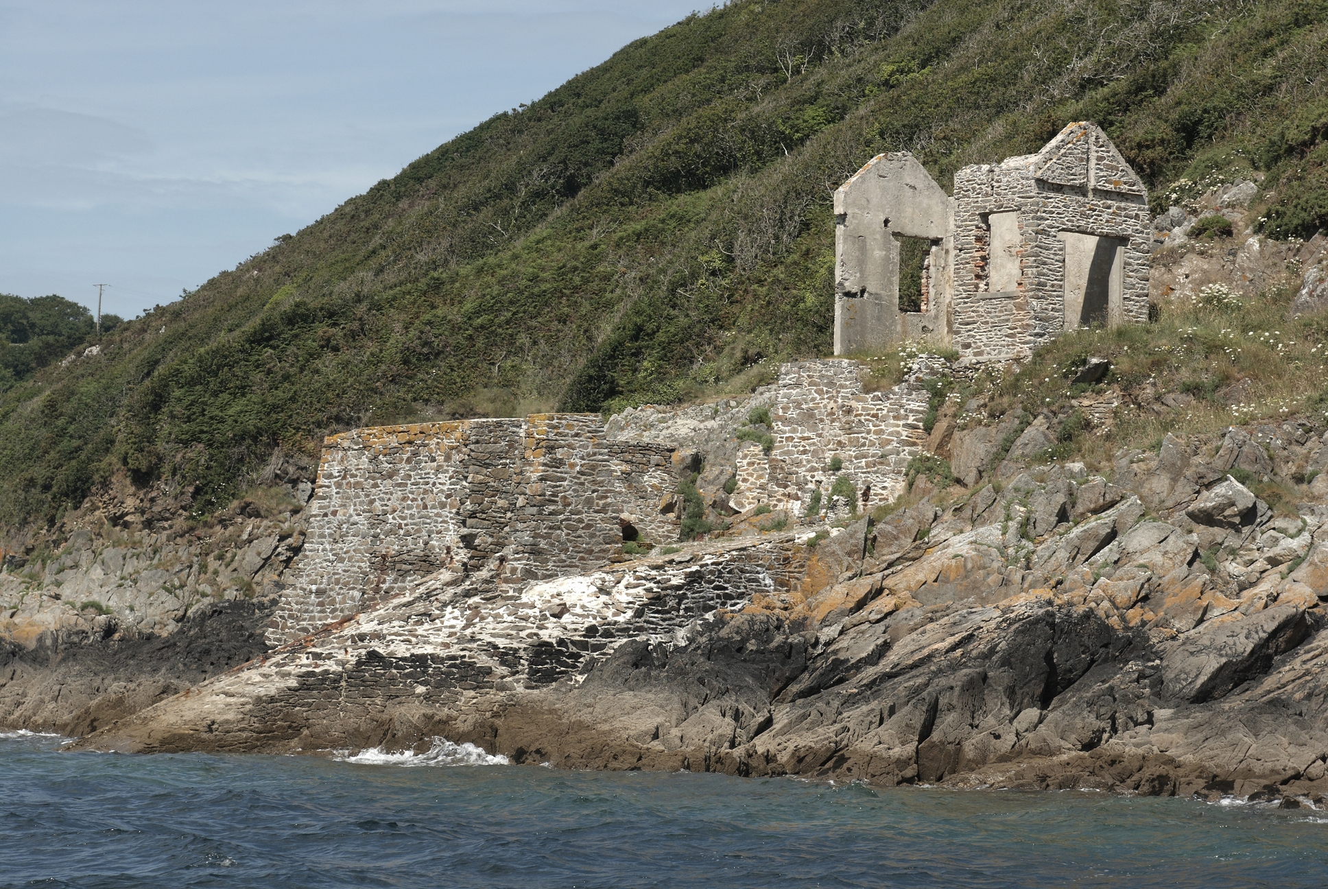 Plouzané : vue générale du poste lance-torpilles expérimental du Mengant depuis la merImmatriculation