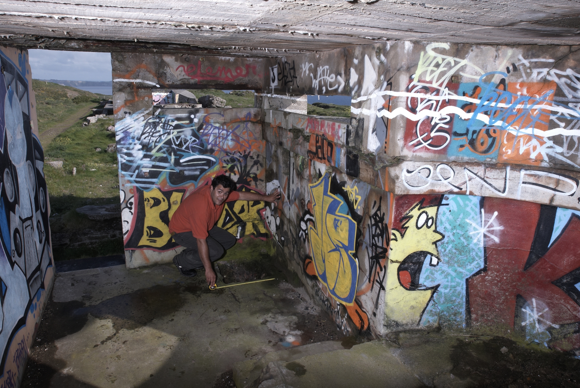Locmaria-Plouzané, pointe du Grand-Minou, Toulbroc'h : batterie de l'ouest dite batterie de droite. Guillaume Lécuillier, chargé d'études d'Inventaire dans le poste de direction de tirImmatriculation