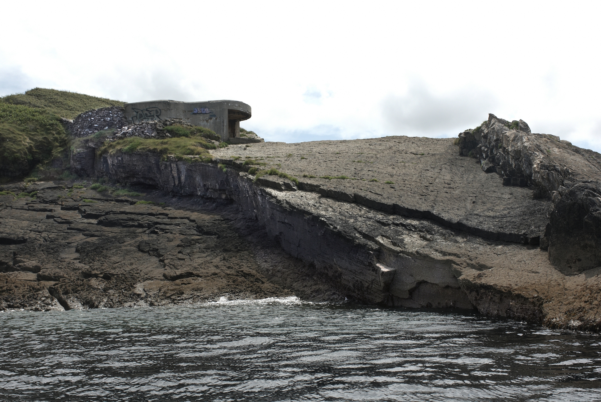 Roscanvel, anse du Diable : abri du projecteur de l'ilot du Diable depuis la merImmatriculation