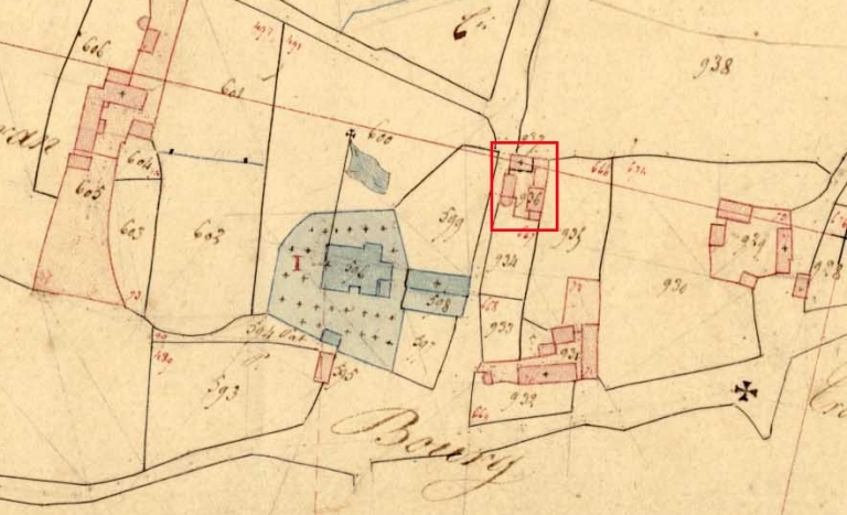 Le Bourg. Extrait du plan cadastral de 1833. 3 P 4/1 (AD Finistère)Immatriculation