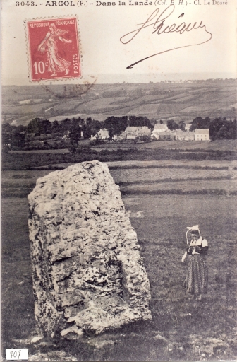 Menhir, sud-ouest de Goarem an Abat (début 20e siècle)Immatriculation