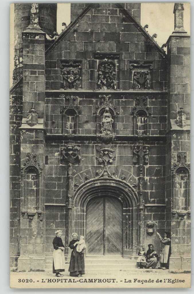 Carte postale. La façade de l'église. L'Hôpital-Camfrout.Immatriculation