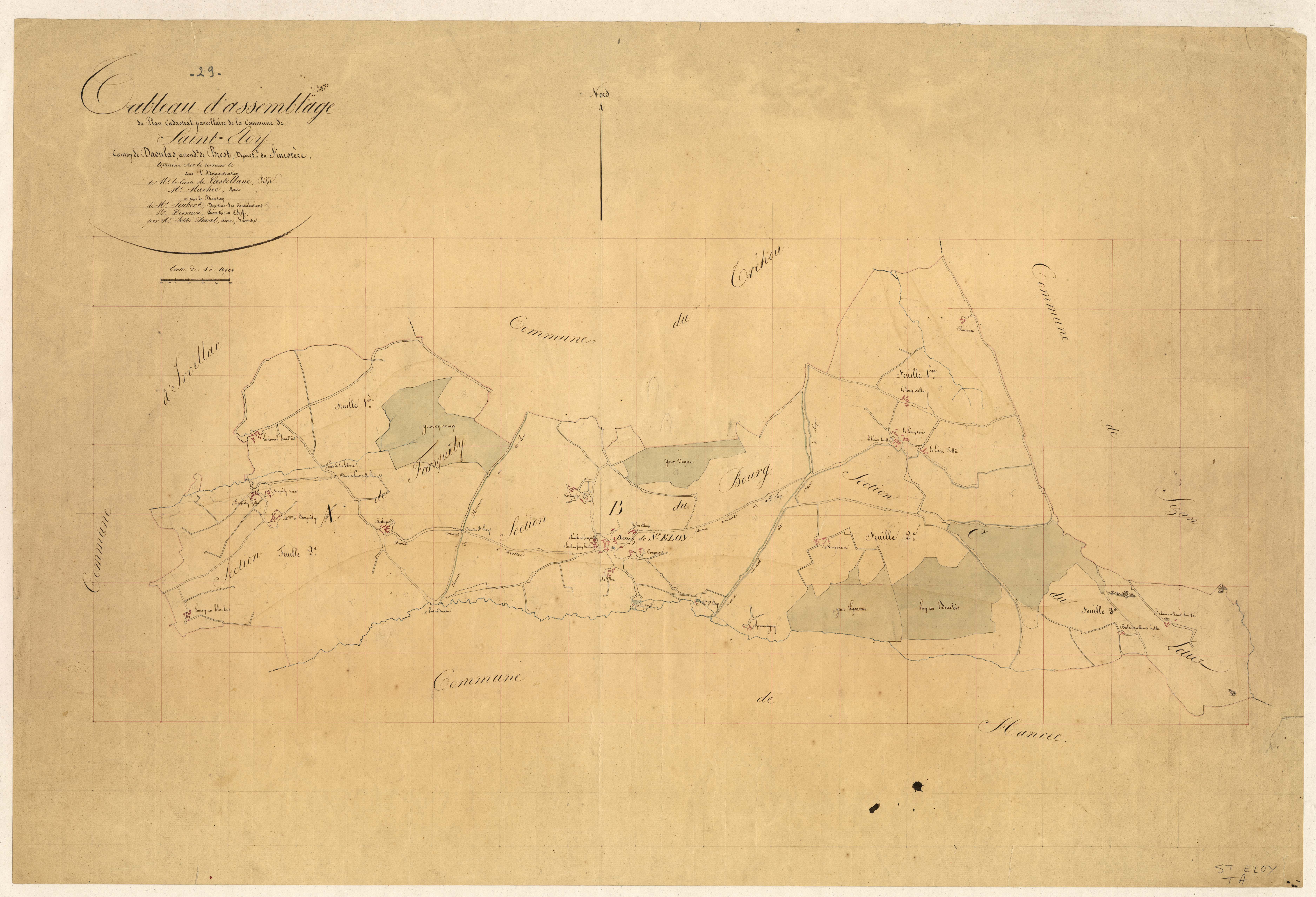 Tableau d'assemblage et cadastre parcellaire, 1825. 3 P 304.