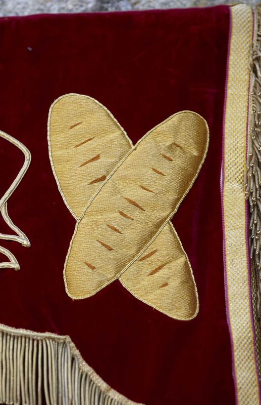 Ensemble de 2 bannières de procession : Christ en croix ; Immaculée Conception ; Sacré Coeur (Rimou),