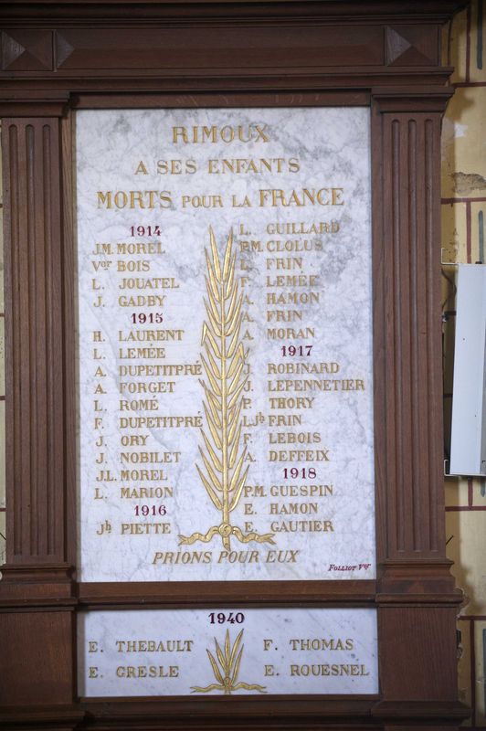 Monument aux morts dans l'égliseImmatriculation