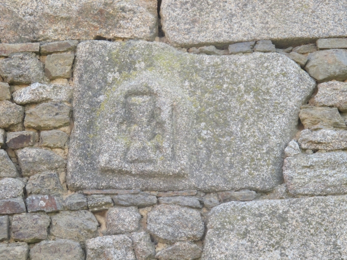 Pierre de remploi aux Courps Coupées décorée d'un calice. Une maison de prêtre pouvait exister dans ce secteur dans le passé.Immatriculation
